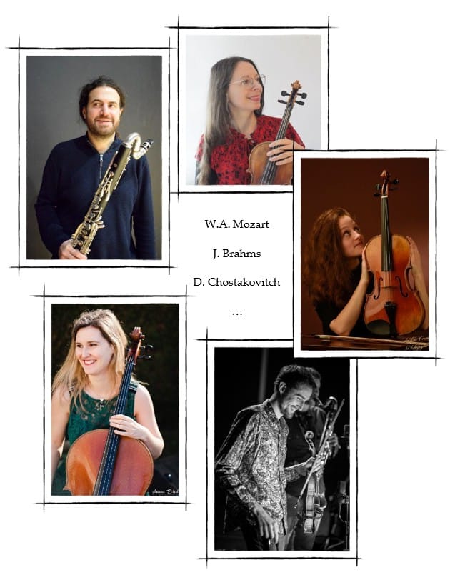 Il est composé de deux violons, un alto et un violoncelle, accompagné d’une clarinette. Une formation rare et précieuse, qui permet à chaque instrument de s’exprimer pleinement, tout en mettant en lumière la beauté de l’ensemble. Les musiciens, forts de leur longue expérience et de leur complicité, créent une alchimie unique, où l’écoute et l’interaction se font au service d’une musique intime et exigeante.
